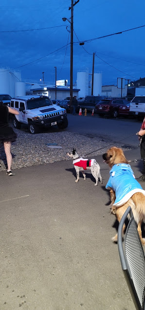 Eventually it was time to say goodbye to each other and end the night. The dogs were a beautiful sight, as each of them connected with happiness to the other pets brought out to the event. Costumes were judged, and I do believe that my man, Carl, ended up with a prize of some sort. I saw the owner taking Carl out to his car, but he held something under his arm. If that were the case, I'm happy Carl won. He is such a resilient guy with all he has suffered through, but his reward is a loving family. You could tell the dog owned the owner, not the other way around, and bless him and his wife for that. Carl is a beautiful baby.